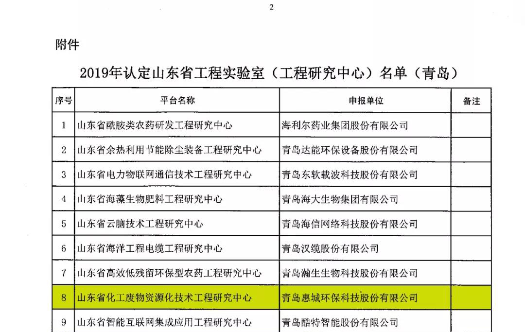 日前,根據山東省發展和改革委《關于公布2019年認定山東省工程實驗室(工程研究中心)名單的通知》(魯發改高技〔2019〕360號)發布文件,我公司申報的省級工程研究中心獲批并被認定為山東省化工廢物資源化技術工程研究中心。[ 查看更多 ]